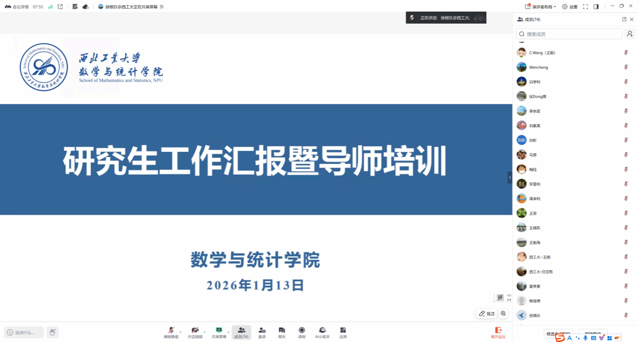 为进一步加强导师队伍建设,提升研究生培养质量,1月13日晚,少妇偷情 线上召开研究生工作汇报暨导师培训会议。学院院长聂玉峰、副院长徐根玖、研究生导师、研究生秘书等80余人参会,会议由徐根玖主持。