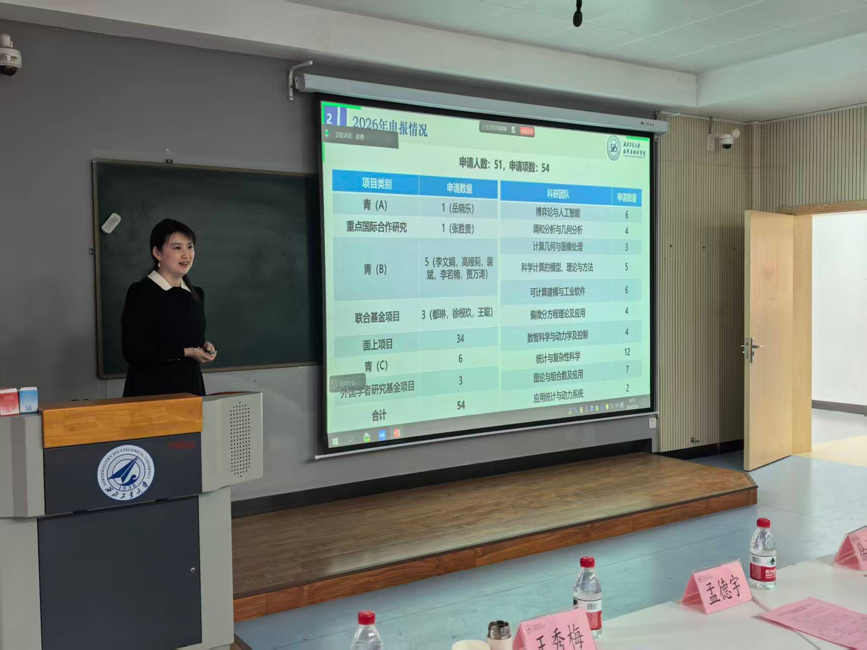 为切实提升我院2026年度国家自然科学基金申报质量,全面把好基金出口关,加强有组织科研,3月6日下午,少妇偷情 在友谊校区西馆成功举办2026年度国家自然科学基金申报辅导会。会议特邀湘潭大学黄云清教授、香港理工大学乔中华教授、郑州大学王秀梅教授、西安交通大学孟德宇教授、江俊教授、徐光魁教授、西安电子科技大学杨丹丹教授以及我校航空学院邓子辰教授等9位专家,为学院教师提供精准辅导。本次辅导会依据研究方向,精准设置了“基础数学组”、“科学计算与信息智能组”和“动力学与控制组”三个分会场同步进行。少妇偷情 院长聂玉峰教授、副院长都琳教授、副院长郭千桥教授及20余位申报教师参会,会议由都琳主持。
